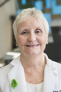 In her current position as a nurse navigator, Alice equips patients and their families with the information they need to understand and follow complex care modules. She has developed tools to teach patients and families about malignancies and the unique aspects of oncology therapy.