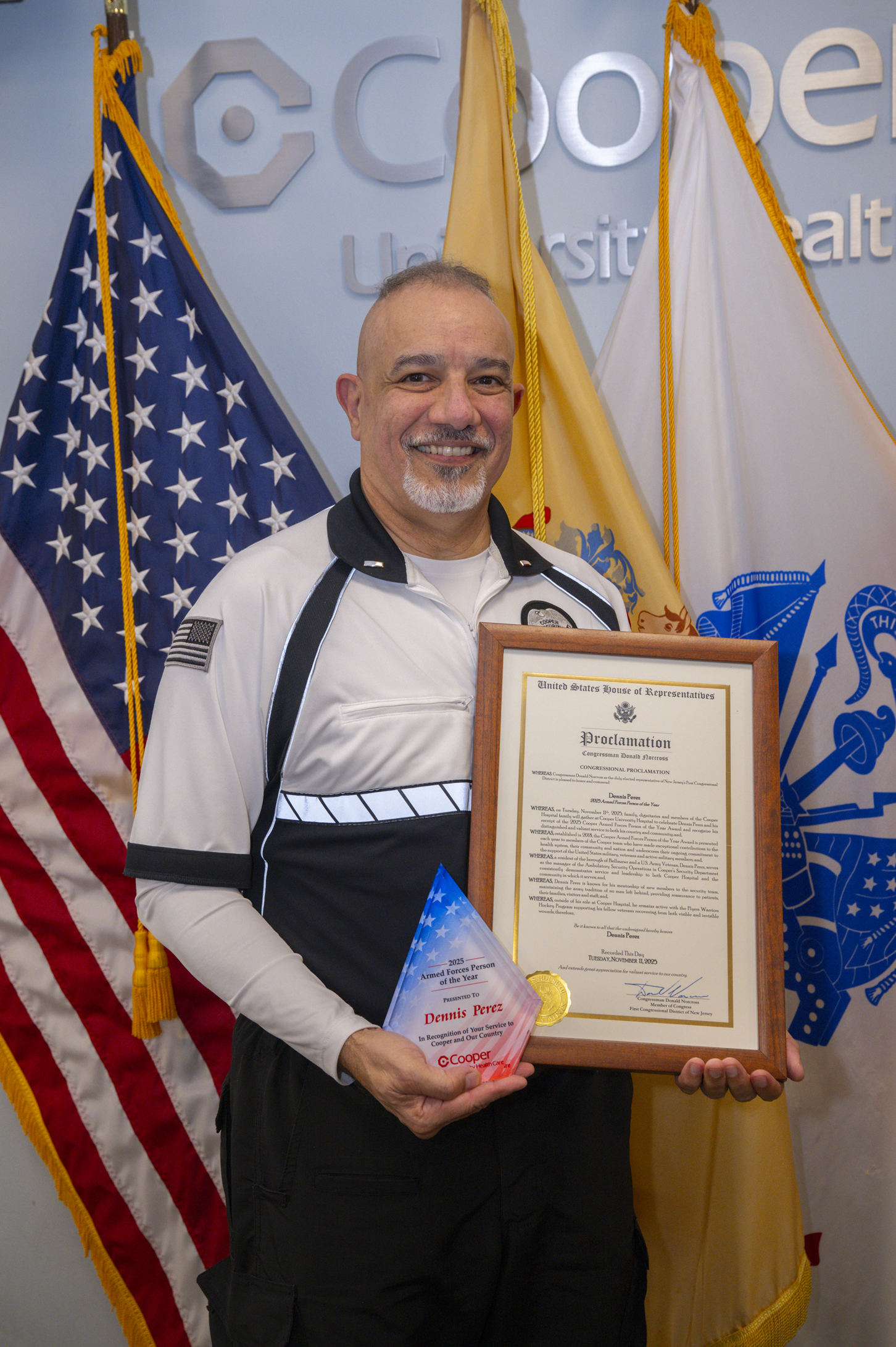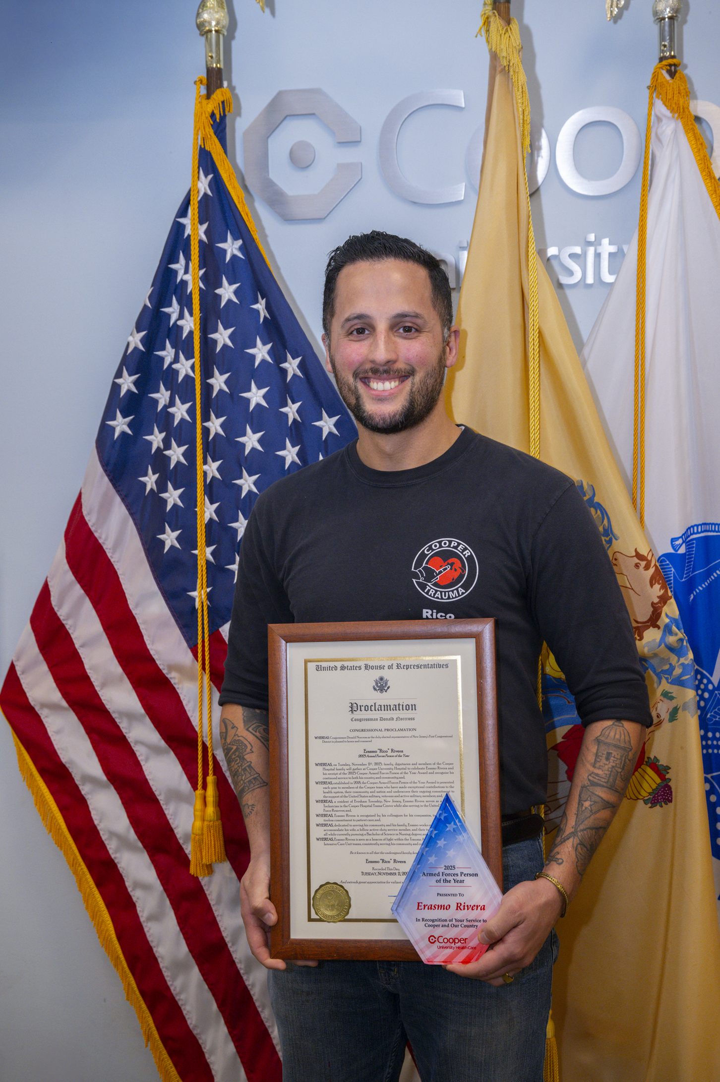 Established in 2018, the Cooper Armed Forces Person of the Year Award is presented annually near Veterans Day to recognize Cooper team members who have made exceptional contributions to the health system, their community, and the nation.