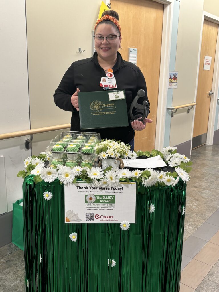 Jennifer Torres, a staff nurse from Pavilion 6 at Cooper University Hospital, was announced as the DAISY Award winner for August 2024. Jennifer’s dedication to Cooper Nursing and the extraordinary care she provides to our Cooper patients earned her the following accolades: