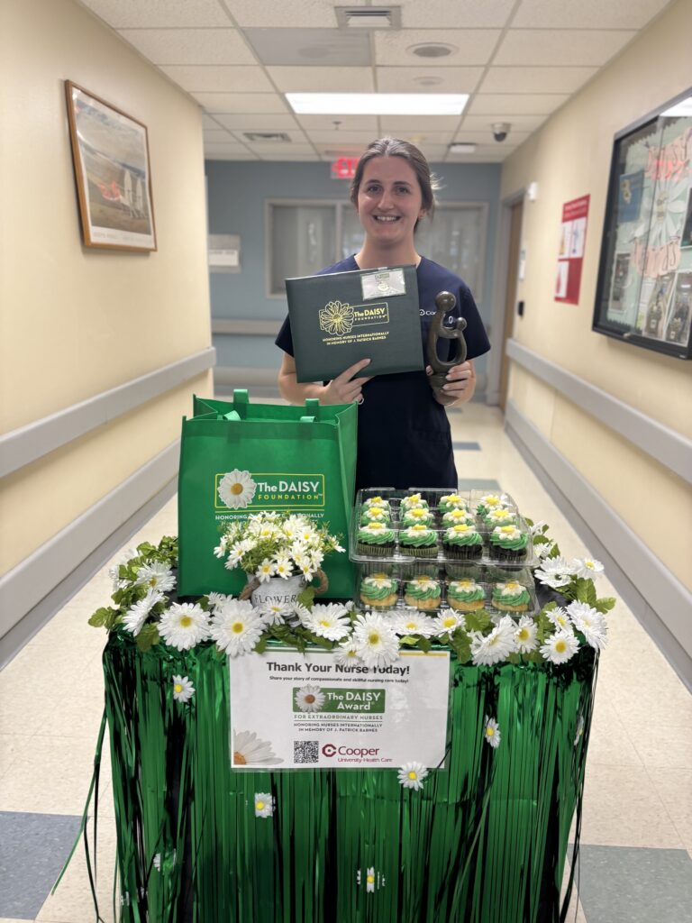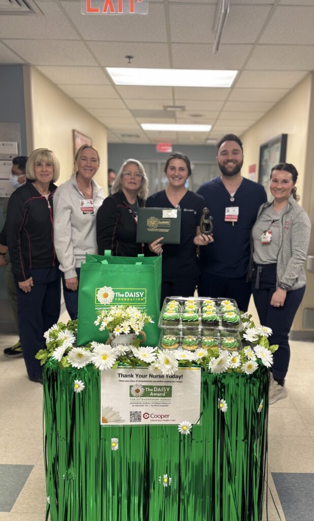 Carly Demarco, BSN, RN, a staff nurse from Kelemen 10 south at Cooper University Hospital in Camden, was announced as the DAISY Award winner for October 2024. Carly’s dedication to Cooper Nursing and the extraordinary care she provided to our Cooper patients earned her the following accolades.